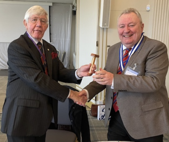 Tony Comber Presenting President Patrick Rawles (Right) with the gavel